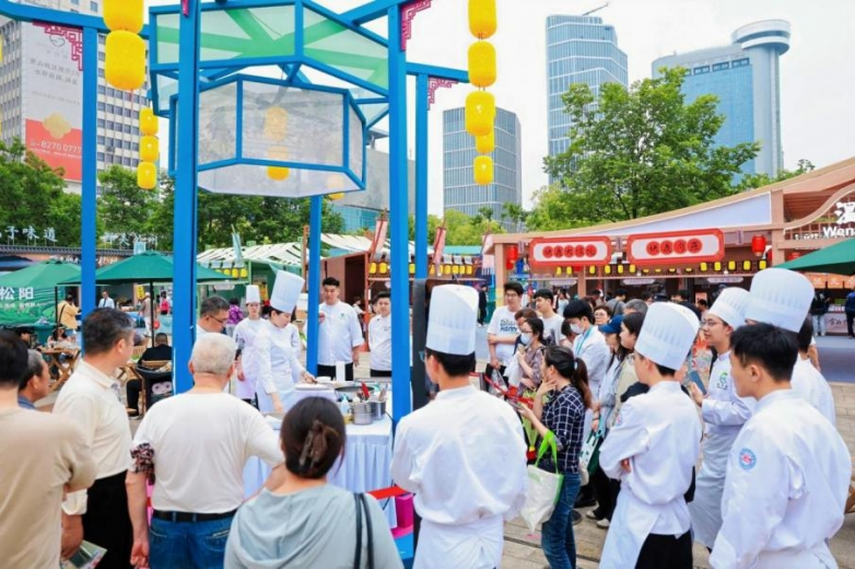 暮色四合,春雨浸润的武林广场升腾起人间烟火。孩子举着糖画机器人制作的“三潭印月”糖画奔跑,临安来的老茶客捧着蟹壳青瓷盏,就着定胜糕细品《梦粱录》中的市井滋味;95后汉服博主正围着人形机器人争相合影。这场将持续到4月28日的舌尖盛宴让千年文化不再是书本里的符号,而是可触、可感、可尝的生活滋味。