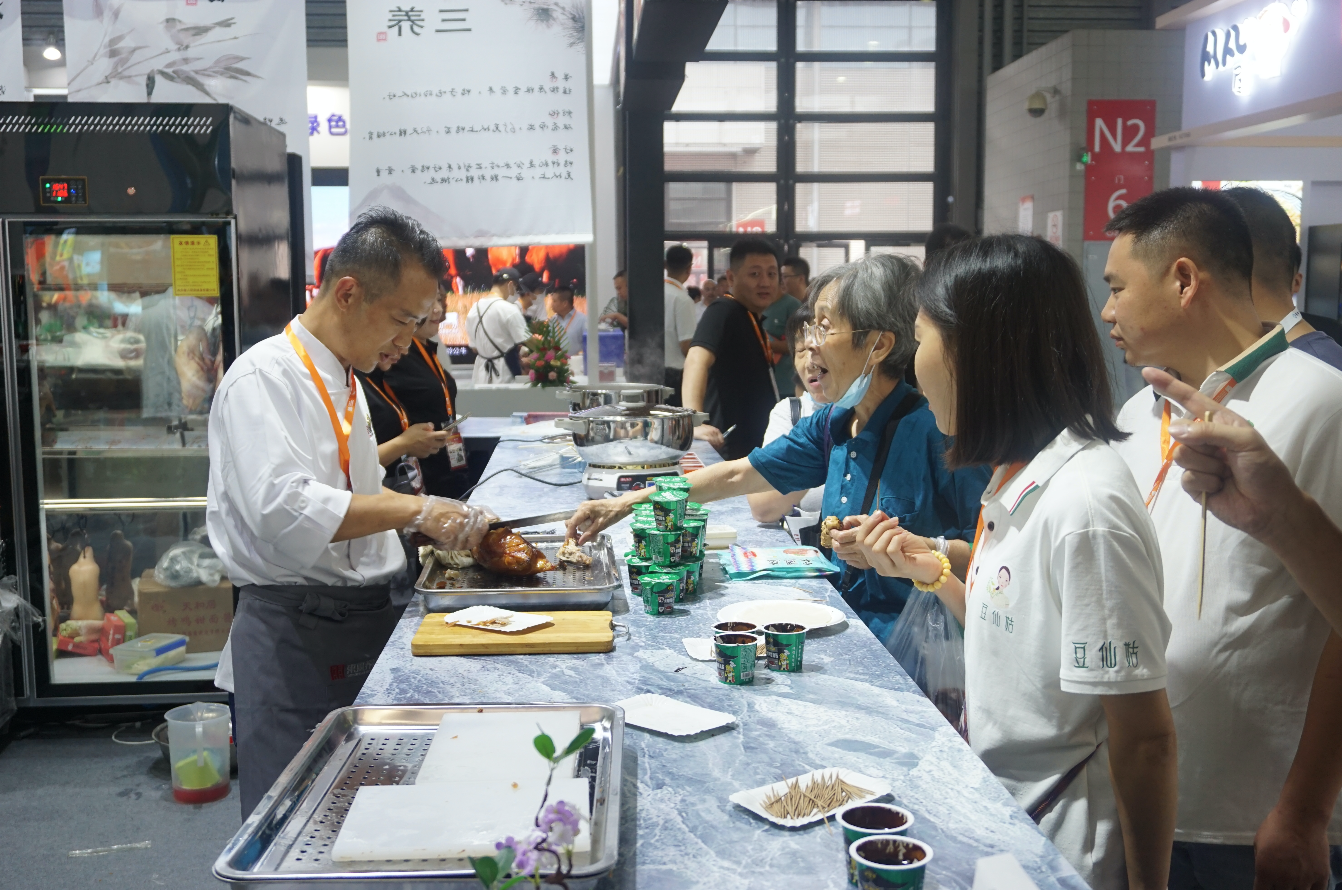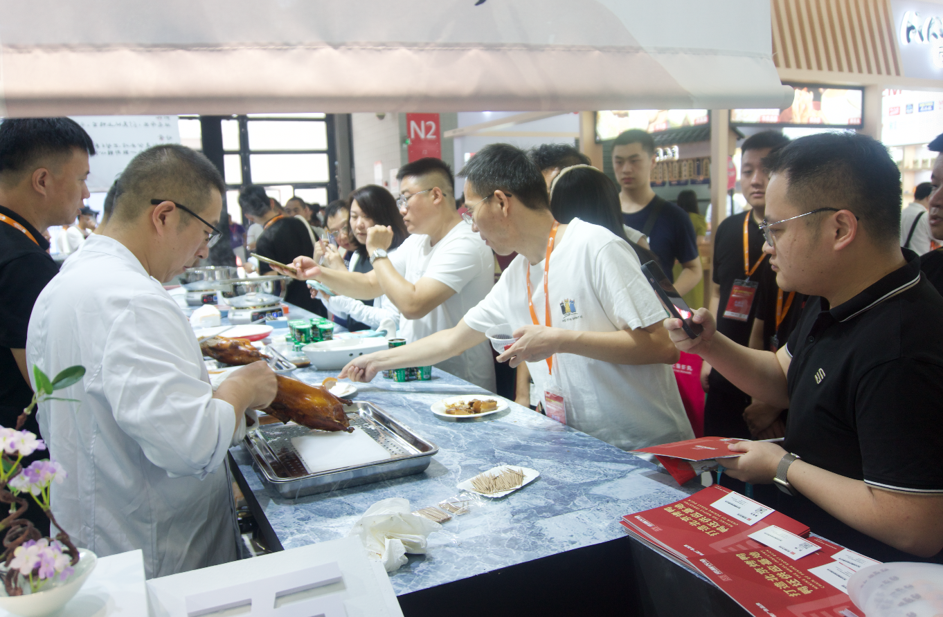 在第14届上海国际餐饮食材展现场,东风养殖集团设置了精美的产品展位,通过产品与客户进行深度交流。展会首日便受到关注,展位前门庭若市,客户络绎不绝。在烤鸭现场试吃环节中,香气诱人、外酥里嫩的烤鸭成为全场焦点,不少客户试吃后赞不绝口并选择现场下单。