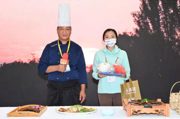 除了丰富多彩的农特产品和特色菜肴,活动还邀请了来自七大涉农区的名厨到场为大家带来精彩的粤菜厨艺展示表演。活动首日,来自黄埔、花都、增城和白云区的的粤菜师傅以菜品出发,结合精湛的粤菜烹饪技艺来制作象形苹果酥、爆汁玻璃乳鸽、香草牛油法包配时蔬、帽峰山招牌烧鸡和金凤白皇子等经典特色菜式,飘香四溢,鲜嫩入味,色香味俱佳,得到了现场观众的高度赞赏。此外,现场还设置了紧张刺激的有奖问答环节,丰富的精美礼品派送,更是让现场的气氛升到了高潮!