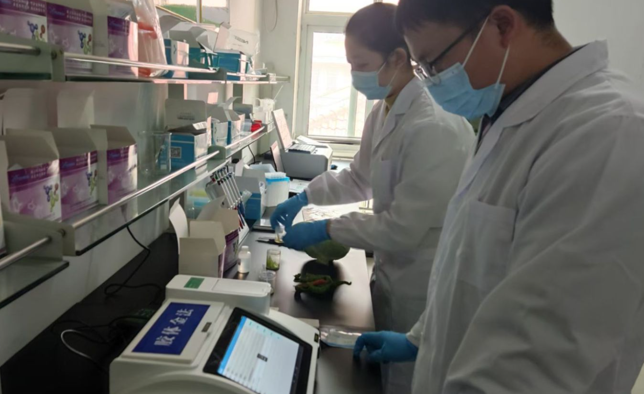 江西省赣州市上犹县农产品质量安全监管站工作人员开展农产品药物残留检测