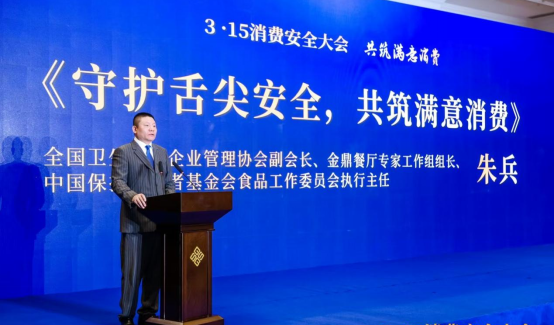 全国卫生产业企业管理协会副会长、金鼎餐厅专家工作组组长、中国保护消费者基金会食品工作委员会执行主任朱兵做了题为《守护舌尖安全,共筑满意消费》的主旨发言。他在发言中说,守护舌尖安全,就是守护消费者的生命权、健康权;共筑满意消费,就是共筑人民群众对美好生活的信心与期待。
