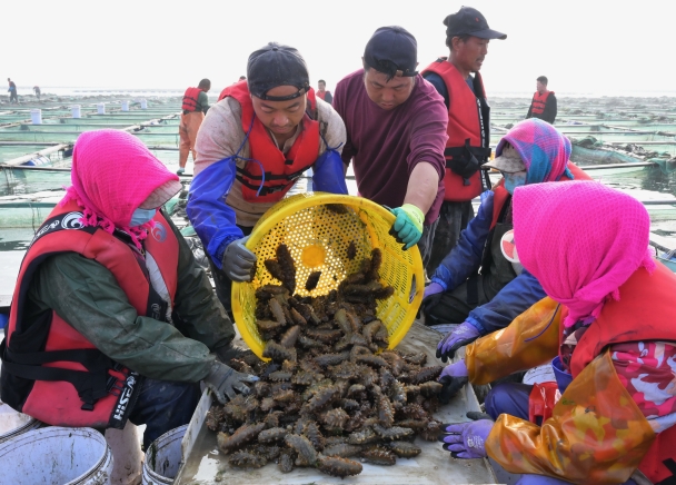 近日,河北省唐山市曹妃甸区利用深海网箱养殖的海参进入收获期,养殖户开始捕捞、分拣加工海参,供应市场。近年来,曹妃甸区积极探索利用深海大水面、抗风浪网箱养殖海参,取得良好的经济效益。据介绍,目前该区深海网箱养殖海参面积达2200多亩。