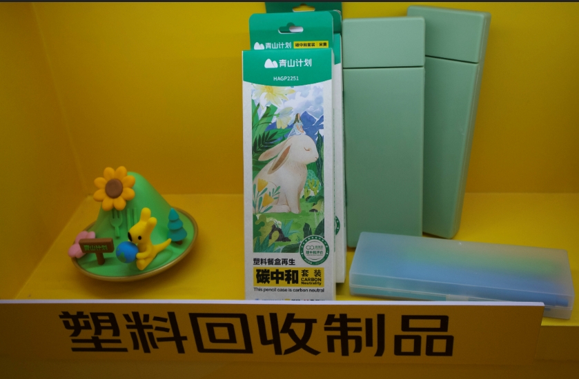 如今,环保消费蓬勃兴起,适度节约的生活理念和消费模式已渗透至人们衣食住行的各个方面。在美团公益展台,美团联合东华大学展示了废旧餐盒再生制成的速干T恤、首款碳中和文具套装等吸引众多观众驻足。据该展台工作人员介绍,回收的废旧塑料餐盒运往再生处理工厂,经过深度清洗、熔融造粒等环节后被加工成了诸多“绿色”产品。