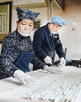 图为日前,在永年区广府镇东街村,村民们正忙着手工制作陈二南糖供应市场。