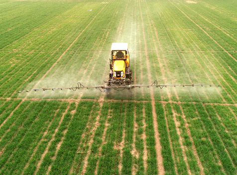图①为3月22日,在栾城区南高村,村民驾驶自走式喷杆喷雾机给小麦喷洒营养液(无人机照片);图②为在栾城区温家庄村,工作人员操作植保无人机为小麦施撒叶面肥。