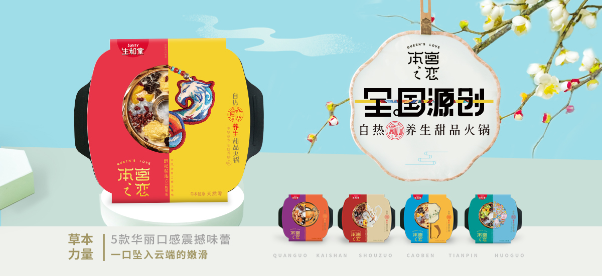随着近年90后、95后成为消费主力军,纵观时下食品行业,自热品类正在处于热潮爆发期,基于上述两点的特性和未来发展风向,生和堂此次极具创造性地将两者结合,打造“草本龟苓膏X自热火锅的全新概念,于近日推出又一跨界力作:本宫之恋”自热草本养生甜品火锅。
