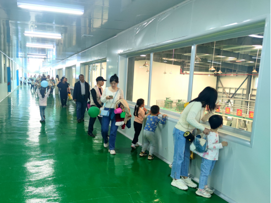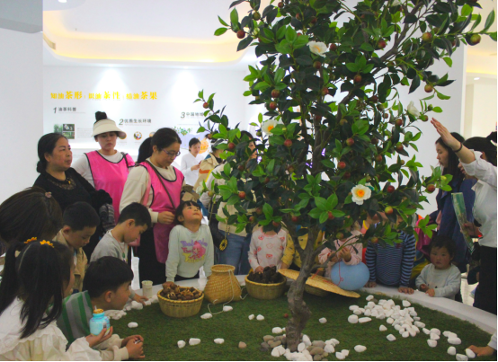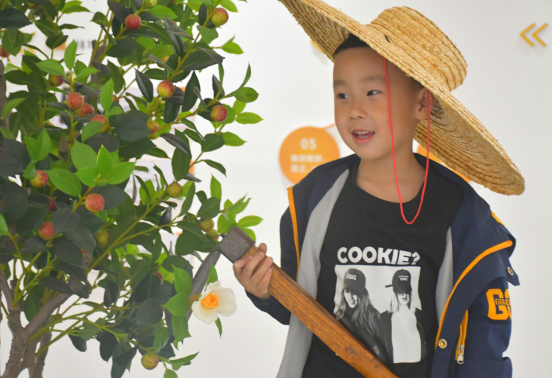 植树结束后,大家前往神农国油工业园,参观了透明式有机压榨工厂。置身于油茶电子博物馆内,沉浸式体验油茶历史文化,通过主持人图文并茂的互动问答式讲解,100组亲子家庭对油茶有了清晰的认知,知晓了油茶是如何从一棵小树苗到开花结果,再经过压榨等工艺最终蜕变成一滴滴金黄透亮的茶油,一颗热爱茶油的种子也许就此在孩子们心中生根发芽。