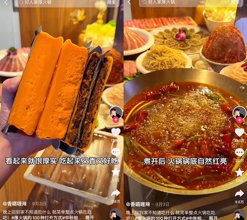 “我以前教大家让火锅底料更好吃,不是先要用油炒一下吗?但是这一款完全不用,直接撕料包、加水,非常方便,煮开之后它是非常好吃的火锅店里面的那种风味,还原度非常高,和我回重庆吃老火锅是一模一样的。“