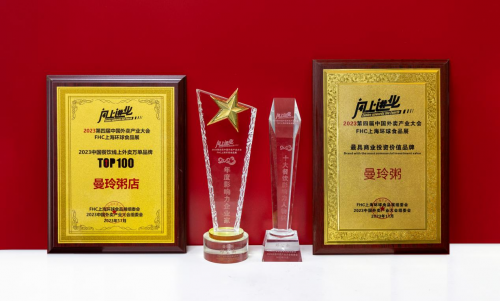 大会上,根据组委会专家评审,网友投票进行奖项评选,曼玲粥荣获“2023最具商业投资价值品牌”、“2023中国餐饮线上外卖万单品牌排行榜TOP100”奖项;董事长邓公断先生被授予“2023十大餐饮影响力人物”、“2023年度影响力企业家”荣誉称号。这是曼玲集团用多年来持续不断的努力、精进与稳定发展,再获行业认可的成果。(图文/筱蔓)