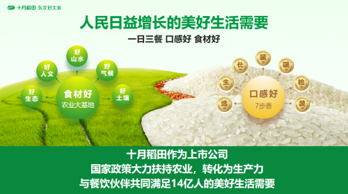 目前,中国餐饮行业进入快速恢复期,这也带动餐饮供应链发展进入新阶段。十月稻田深耕行业十余年,凭借对客户需求的深入洞察、多链路的运营模式、优质粮食产地的战略布局及广泛渠道的销售网络,成功打造出一个成熟的全链路供应体系,为更多的终端餐饮企业提供强大的支撑和保障。