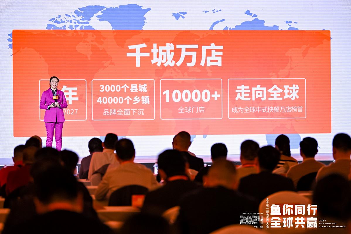 大会上,鱼你在一起创始人魏彤蓉首先致辞,感恩各位供应商伙伴的长期同行,2023年,鱼你在一起以全球门店数量超2300家的成绩,稳居酸菜鱼品类第一,这离不开各位供应商从后端给予的大力支持。面对行业趋势变化及万店战略目标,魏总提出“千亿大赛道,爆品很上瘾,优质又平价,标准化出品”的产品策略口诀,明确推进产品从酸菜鱼大单品向天花板更高的“1+N”中式快餐爆品组合升级,提升供应链、数字化与专业化管理的赋能力度。