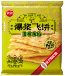 榴莲馅爆浆飞饼,甄选苏丹王榴莲制馅,其中馅含量更是≥50%,用料十足;馅料调制和配比选用新西兰奶源,浓缩牛乳使得馅料更加柔滑,奶香与榴莲果香相得益彰。香蕉馅爆浆飞饼,精选香蕉牛奶酱入馅,牛奶与香蕉味道充分融合,甜而不腻,馅含量≥40%,口感软糯老少咸宜。