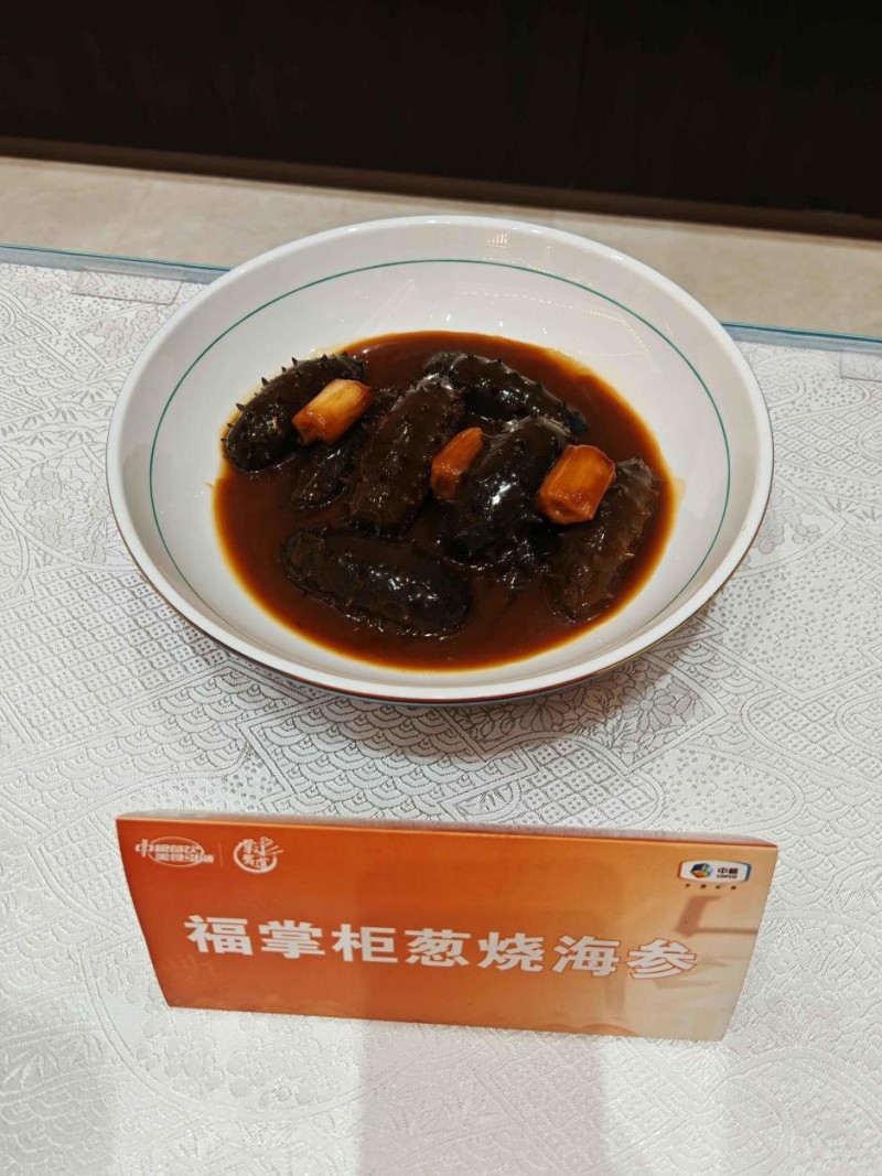 对于徽菜名厨如何与北方名菜融合,尹亲林大师则亲自指导,携其高徒夏明亮先生进行了现场献艺。他以一道匠心独运的福掌柜葱烧海参,向嘉宾们展示了海参料理的高超烹饪技艺,更巧妙融合了“南韵北味”,令人耳目一新。