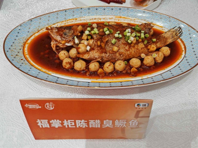 经王中伟先生讲解,尹亲林大师弟子江勇先生掌勺完成的福掌柜陈醋臭鳜鱼,在加入酸萝卜作为辅料的同时,把福掌柜菜籽油、福掌柜陈醋、福掌柜金标生抽等调味特点发挥到了极致。用北方菜和徽菜的融合之妙,生动诠释了新一代厨人的传承与创新。