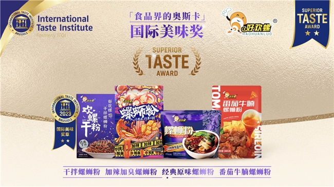 近年来,好欢螺不断推陈出新,以创新之力续写中华美食传奇。陆续研发出的多款创新口味,充分展现了好欢螺在传承中创新、在创新中发展的理念。其中四大明星产品(经典原味螺蛳粉、加辣加臭螺蛳粉、番茄牛腩螺蛳粉、干拌螺蛳粉)全部斩获 “食品界的奥斯卡”—— 国际美味奖,这是国际顶级专业美食评委对中华美食的高度赞誉。2024年,好欢螺从4000+全球参奖案例中脱颖而出,获得有 “食品界诺贝尔” 之称的 “iSEE全球食品创新奖” 年度最具价值创新品牌,主销产品更是荣获福布斯中国2024大消费年度影响力产品。这些荣誉,是好欢螺实力的象征,更是中华美食文化在国际舞台上绽放光彩的生动体现。