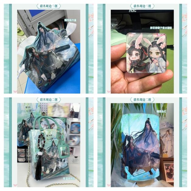 年轻化叙事:联名周边中亚克力镜子、双人杯垫、不锈钢盘等设计,巧妙平衡了二次元趣味与实用性,还迎来网友们的周边二创。社交媒体上#益禾堂魔道祖师动画#话题,更以UGC内容反哺品牌,形成传播裂变。