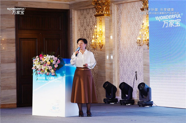 随后,万家宝鲜牛奶集团研发中心总经理张冰岩通过一则小故事生动的讲述了双歧杆菌是如何守护肠道健康的。同时揭开了“双歧50益生菌酸奶”的新品上市的序幕。