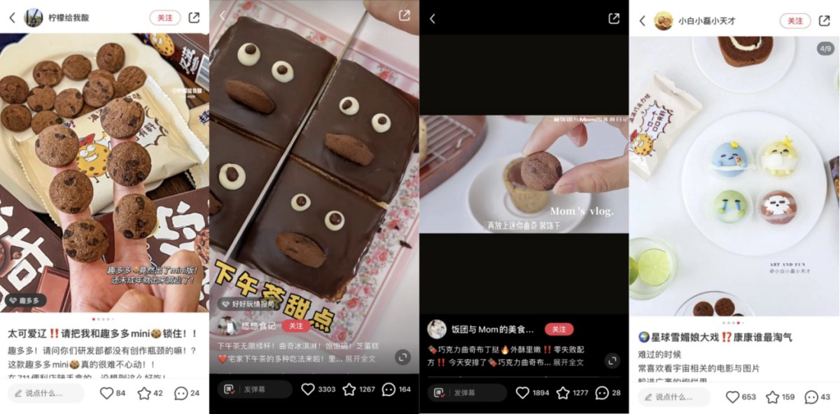那么,品牌可以如何和这些平台用户玩在一起呢?活动现场,小红书分享了趣多多上新营销的一个案例——「没想到的趣多多」。结合趣多多迷你曲奇上新出圈诉求,小红书结合产品「mini酥脆」的特点,在站内打造 #没想到的趣多多 互动话题,通过开屏指引、H5互动打卡、KOL内容种草等玩法吸引用户互动。*活动期间,IP获得2.35亿+全网曝光,站内UGC内容增长5800+篇,「趣多多曲奇冰淇淋」、「趣多多布丁」、「趣多多雪媚娘」等海量创新吃法被用户创造出来,产品相关内容渗透提升220.5%。