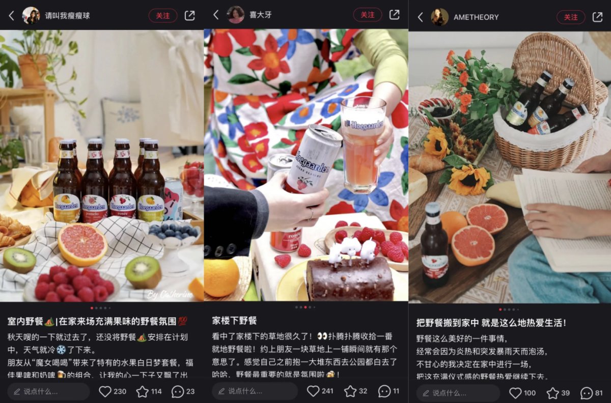2021年,在「野餐」趋势飞速上升之际,小红书结合福佳啤酒的上新营销诉求,将S级营销IP 「城市野餐计划」与福佳新品绑定,打造互动话题 #带着福佳去野餐。*合作期间,品牌站内行业排名达到第4,笔记数环比上升50%,福佳啤酒也成为站内野餐内容中的高热单品。