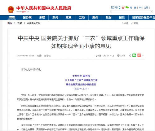 2020年《中共中央国务院关于抓好“三农”领域重点工作确保如期实现全面小康的意见》指出,坚决打赢脱贫攻坚战,持续抓好农业稳产 提供和农民增收,推进农业高质量发展,保持农村社会和谐稳定,提升农民群众获得感、幸福感、安全感,确保脱贫攻坚战圆满收官,确保农村同步全面建成小康社会。