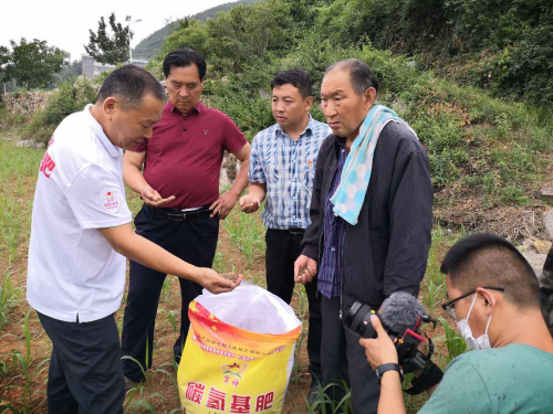在捐赠现场给农户讲解完肥料的使用要领,为村民答疑解惑后,技术人员更是深入村民家的田间地头,实地查看谷子、果树的生长情况,并分别给出具体的施肥指导意见。梁凤全梁总说道:“农民传统的施肥方法往往不科学、不理性,这与精准施肥、科学施肥的要求差距还很大,希望通过我们的交流指导,可以让他们清楚每种作物在不同生长期应该用什么肥,怎么用,种植出品质更好的农产品,达到增产增收的目的。”