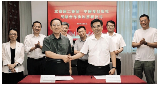 本报讯 (记者 王瀚)7月22日,北京建工集团与中国食品报社签署战略合作框架协议,积极探索双方在现代农业、冷链物流、生态治理、新农村建设及乡村振兴等各领域的深化合作。中国食品报社党总支书记、社长黄国胜,北京建工集团党委常委、副总经理李建军,集团副总经理陈连义以及双方相关部门负责人参加会议。