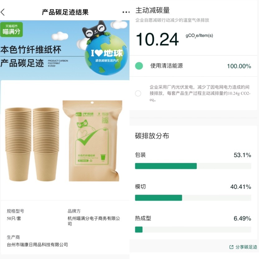 从产品层面来看,目前喵满分旗下涵盖休闲零食、粮油米面、乳饮冲调、个护家清、宠物生活、日用百货等15个品类的商品。此外,为践行社会责任,喵满分还特别推出了独家ESG商品,该系列商品首次纳入绿色供应链筛选标准,并通过与阿里云能耗宝的合作,实现了测算商品全周期减碳量的功能,消费者通过扫描二维码即可了解商品的减碳足迹。
