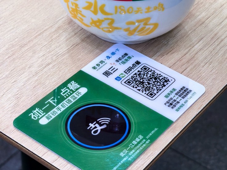 今年7月,支付宝推出“碰一下支付”,随后又首家推出“碰一下点餐”数字化体验。顾客在接入该服务的门店就餐时,落座后只需解锁手机,轻轻触碰餐桌上的智能贴就能迅速跳转至点餐小程序,相比扫码点餐,步骤更少,同样安全又便捷。