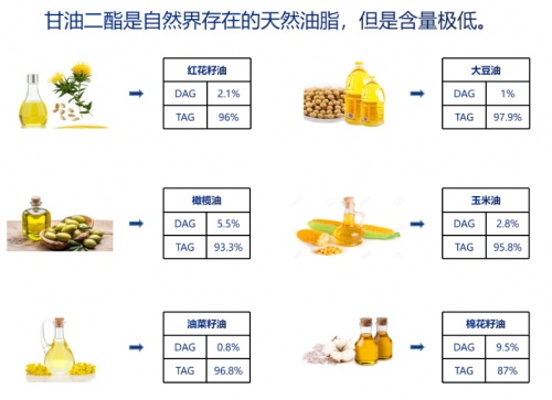 甘油二酯(Diacylglycerol, DG),是一类甘油三酯(Triacylglycerol, TG)中一个脂肪酸被羟自由基取代的结构脂质。DG是天然植物油脂的微量成分及体内脂肪代谢的内源中间产物,是公认安全(GRAS)的食品成分。