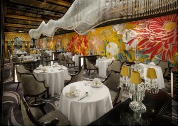 图片一:“御花园” 主用餐区考究奢华,长达35米的特制苏州丝绣贯穿整个大厅,细腻描绘菊花簇拥的美艳。